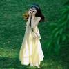 Summer 2025 Women's Petite Seaside Apricot Spaghetti Strap Maxi Dress
