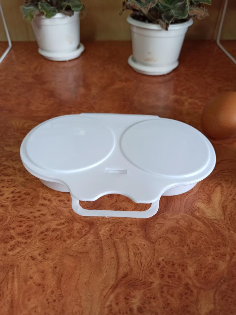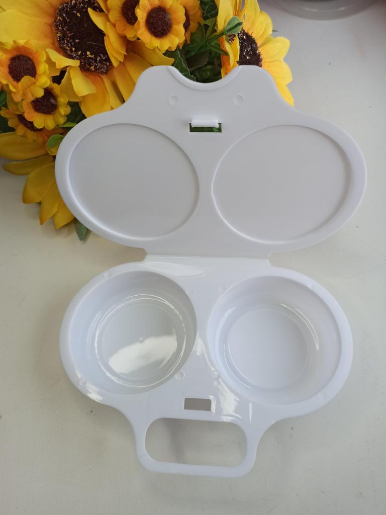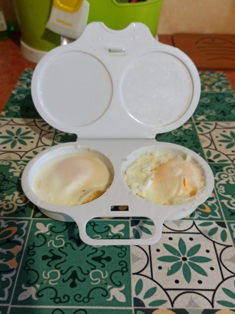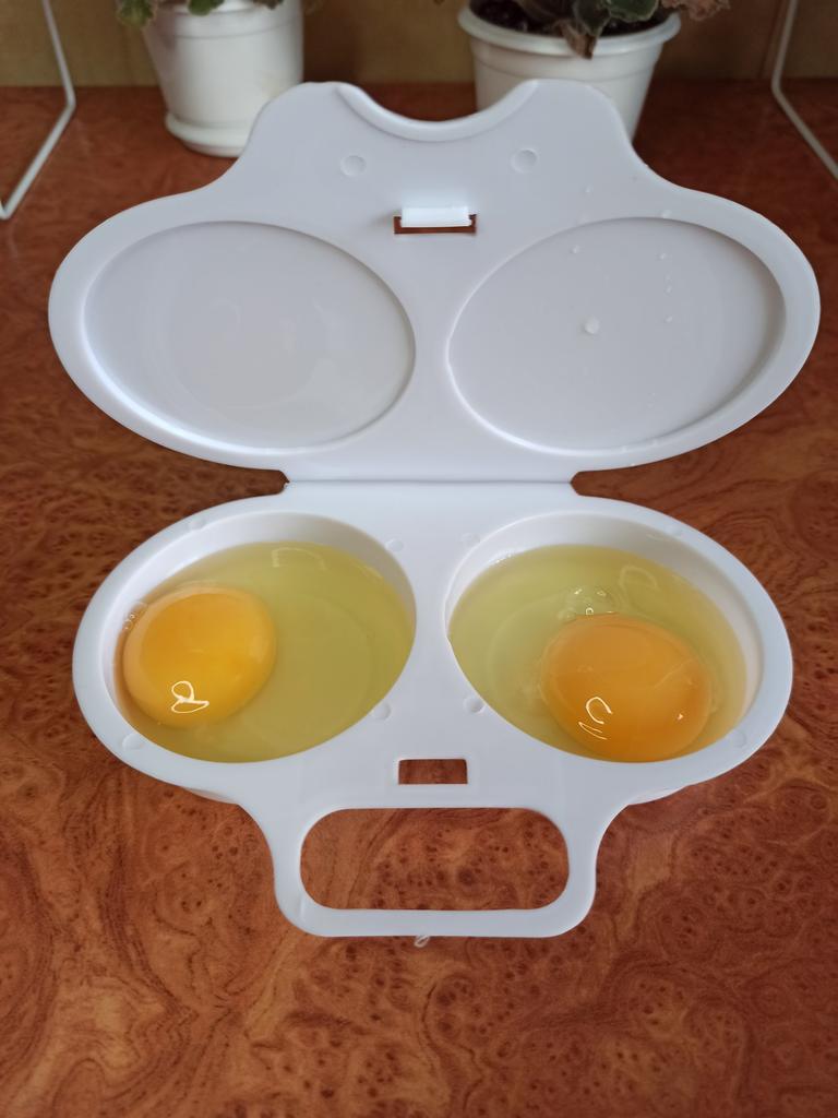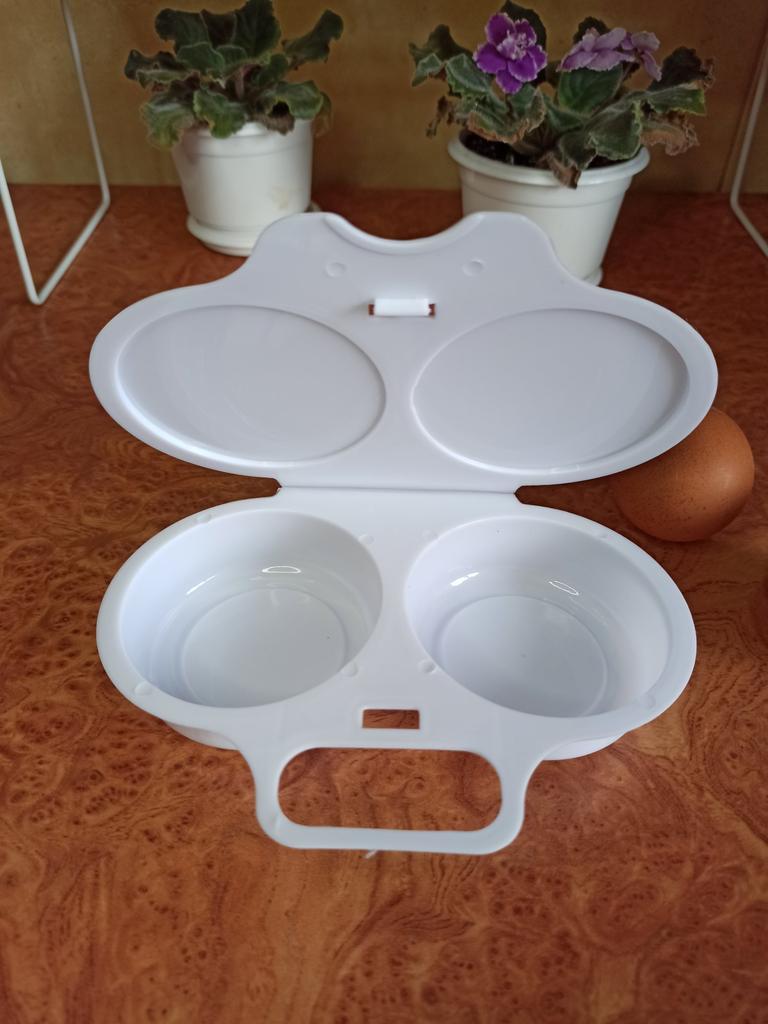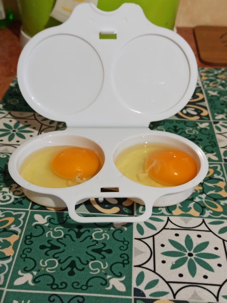 EGG COOKER fantastic microwave egg cooker. A drizzle of extra virgin olive oil, a pinch of salt and in one minute at 800 watts they are ready! Arrived in Italy with tracked shipping in 20 days. Careful packaging. Material: plastic. Snap closure . No defects found. Absolutely recommended purchase š
