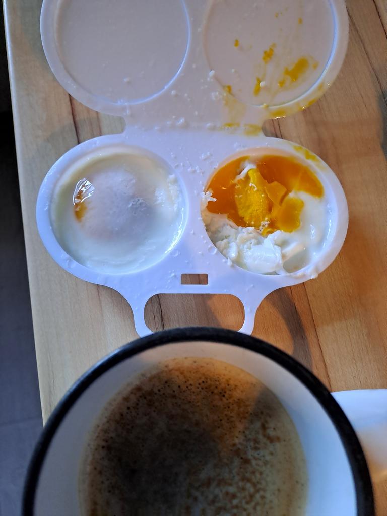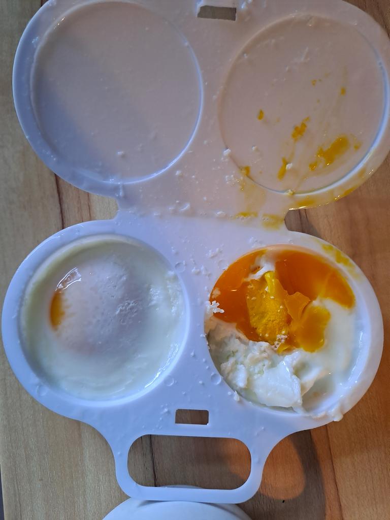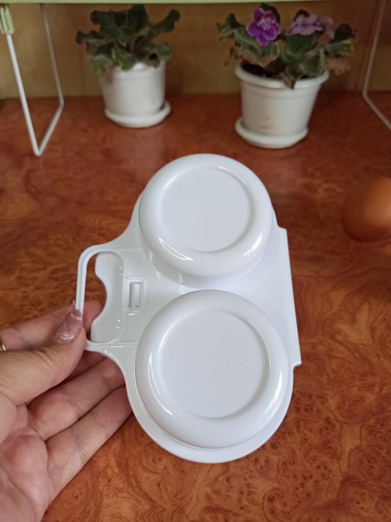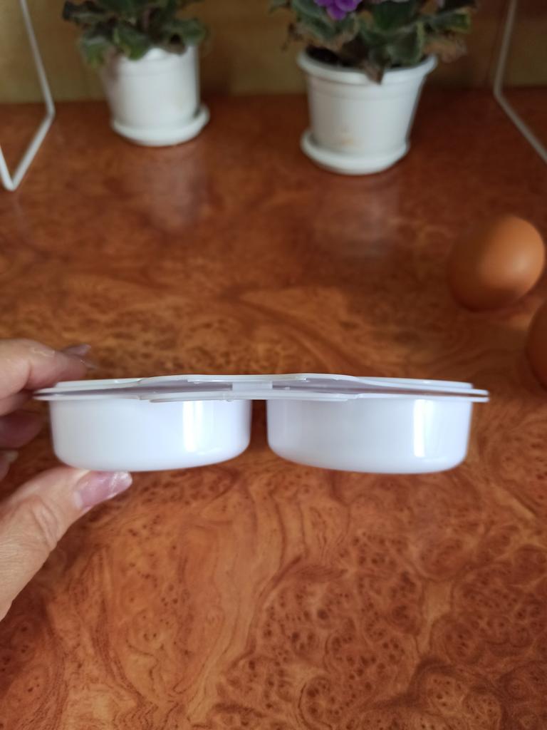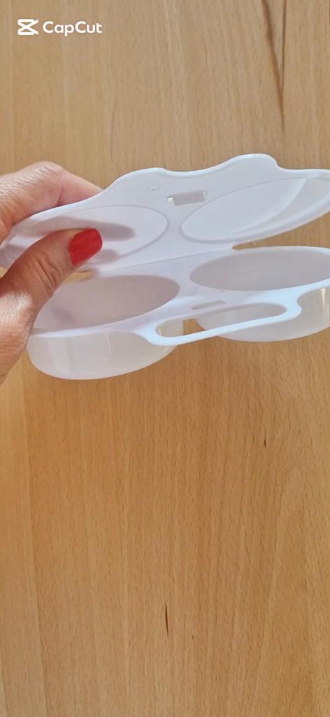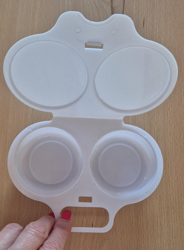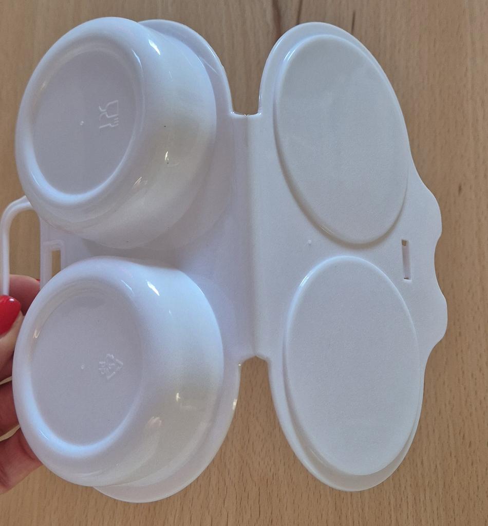 EGG COOKER fantastic microwave egg cooker. A drizzle of extra virgin olive oil, a pinch of salt and in one minute at 800 watts they are ready! Arrived in Italy with tracked shipping in 20 days. Careful packaging. Material: plastic. Snap closure . No defects found. Absolutely recommended purchase š