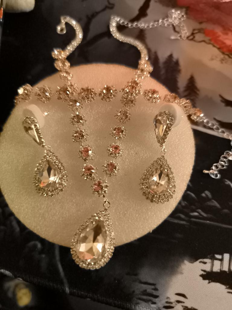 Elegant Multi-Color Floral Diamond Wedding Jewelry Set - Necklace, Stud Earrings & Bracelet