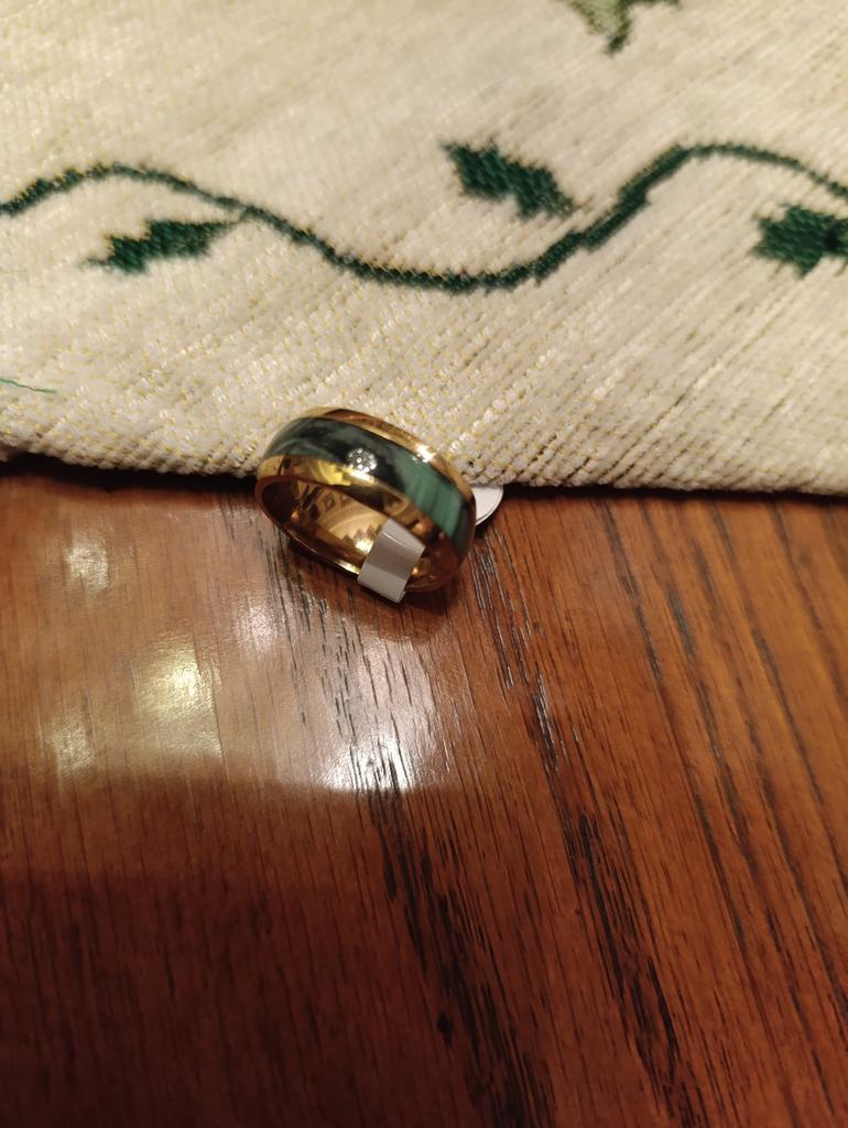 Fashion 8MM Gold Color Stainless Steel Rings For Men Domed Green Abalone Shell Inlay Rings Wedding Engagement Jewelry Gift
