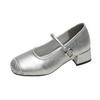Invisible Inner Height 8CM Shallow Mouth Thick Heeled Single Shoes Female Summer Square Head Mary Jane Women's Shoes