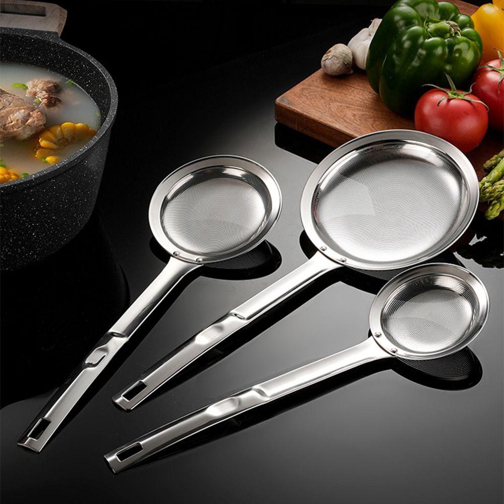 Long Handle Stainless Steel Oil Skimmer Reusable Oil Filtering Spoon Kitchen Gadgets
