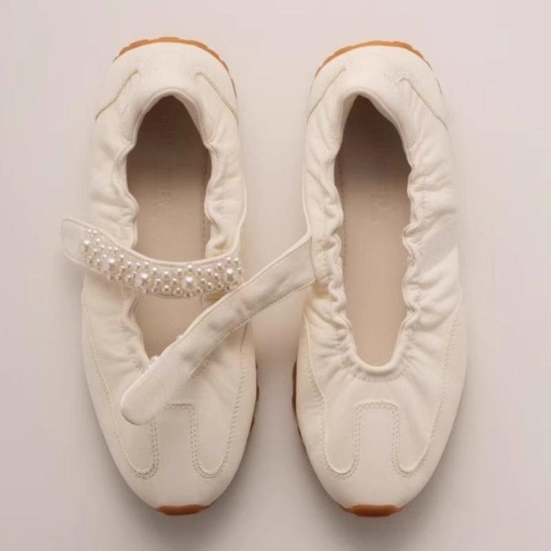 Pearl Mary Jane Sneakers Functional Platform Leather Casual Velcro Inner Heightening Ballet