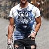 Men 3d Tiger Print Short Sleeve Crew Neck Breathable Medium Stretch Casual Fashion Outdoorparty Weekend Wear
