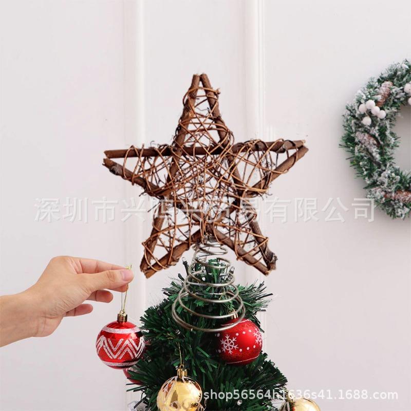 Christmas Soil Vine Spring Pentagram Tree Top Decoration, Christmas Atmosphere Decoration Home Desktop Ornament