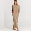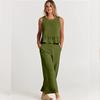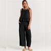 Summer Women's Jumpsuit Comfortable Casual Sleeveless Pleated Vest Wide Leg Pants Nine-point Pants Casual Suit