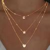 Elegant Multi-Layer Necklace Set for Women, Heart, Star & Teardrop Pendants, Rhinestone Embellished Versatile for Daily & Party Wear