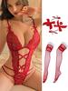 Naughty Red Lingerie Lace Hollow Bodysuit For Women Erotic Backless Sleepdress Teddies Babydoll Underwear Crotchless Open Bra