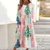 Women's Casual Round Neck Christmas Print Midi Dress Long Sleeve Pocket Dress