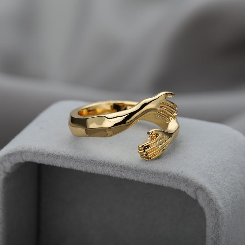 Love Hugging Hand Stackable Rings For Women Men Adjustable Open Cuff Ring Embrace Ring Couple Rings Vintage Punk Zircon Gifts