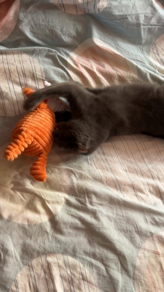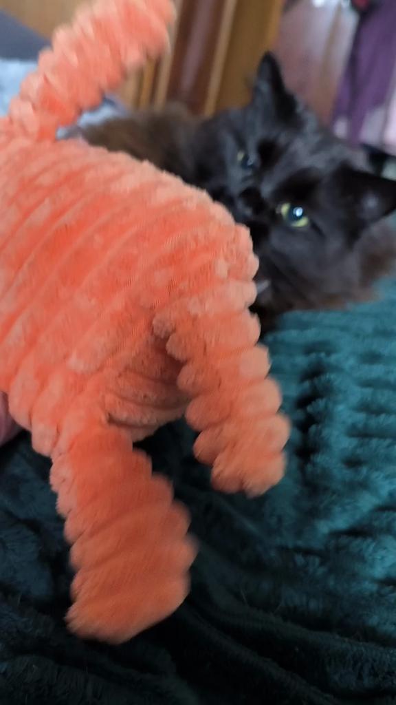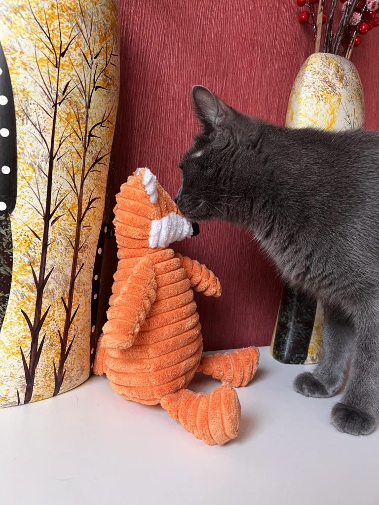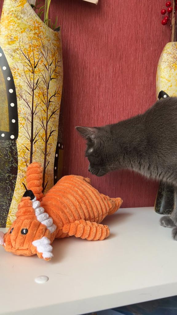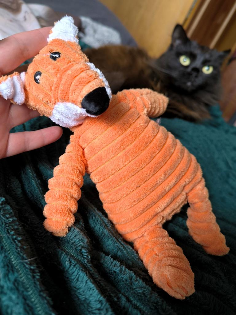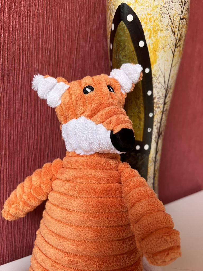 Plush toy for dog – makes a sound and is interactive I bought this toy for my dog, and he just loves it! 🐶 The size (16×26 cm) is perfect – not too small and not too big, it's easy for him to grab in his mouth and play with. The soft texture of the plush gives the impression that it is both pleasant to the touch and relatively durable – it has already survived several "shaking" sessions and has not fallen apart.. What really upgrades it is the sound – the toy makes a noise when bitten, and that excites the dog every time anew. It doesn't get boring, and that's great for keeping him occupied when I'm not available to play. The funny design in the shape of a cartoon animal also adds a smile to us 🙂 This is a perfect toy for a dog that loves games with sound, also soft, also cute, also durable – really worth the price!