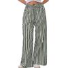 Women's Fashionable Drawstring Striped Wide Leg Pants With Low Waist Pockets And Loose Casual Pants