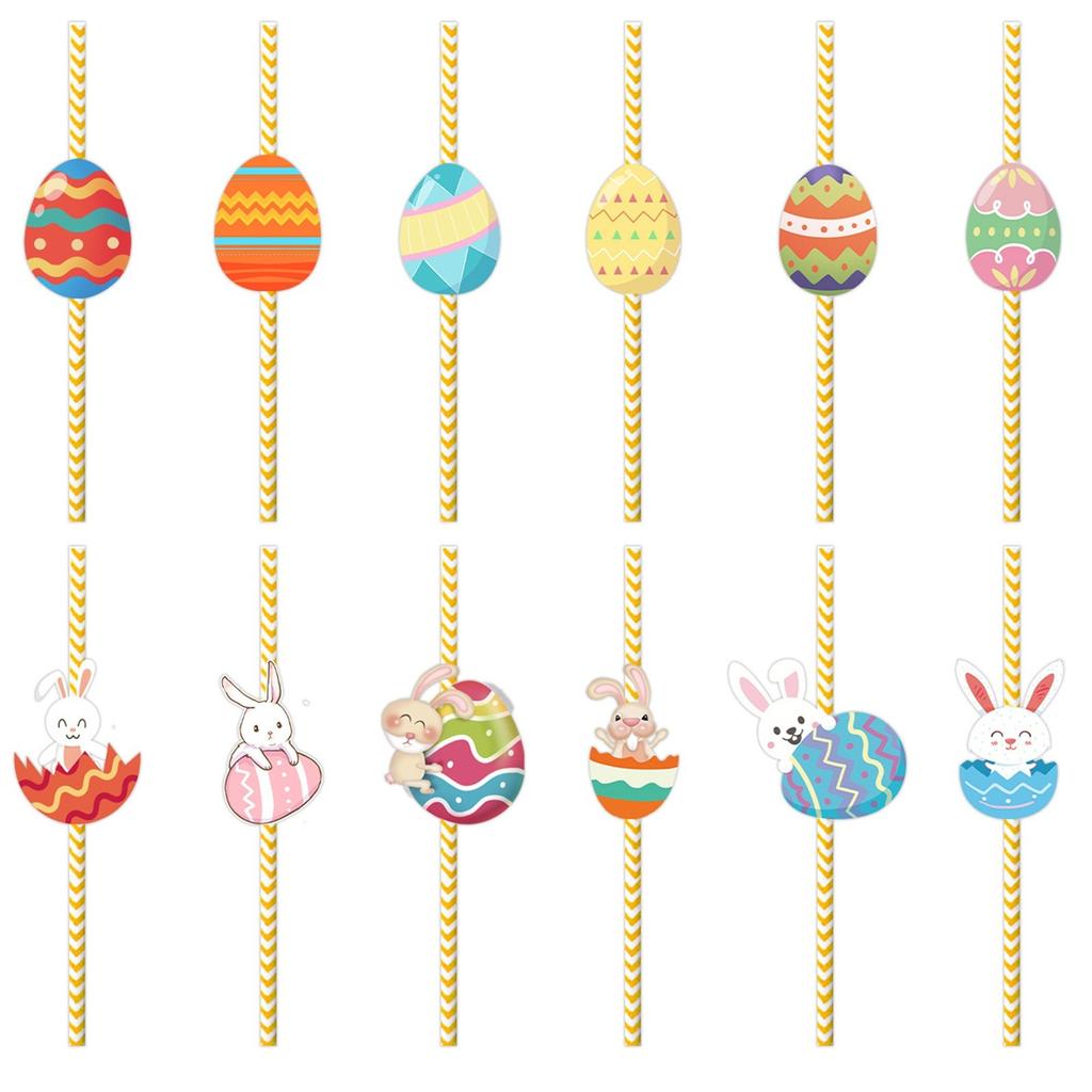 24pcs Easter Straws Paper Reusable Straws Easter Rabbit Straws Colorful Ring Straws Children Easter Party Supplies Gift