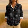 Women's Retro Halloween Printed Button Up Long Sleeved Casual Regular Shirt Collar Top