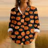 Women's Retro Halloween Printed Button Up Long Sleeved Casual Regular Shirt Collar Top