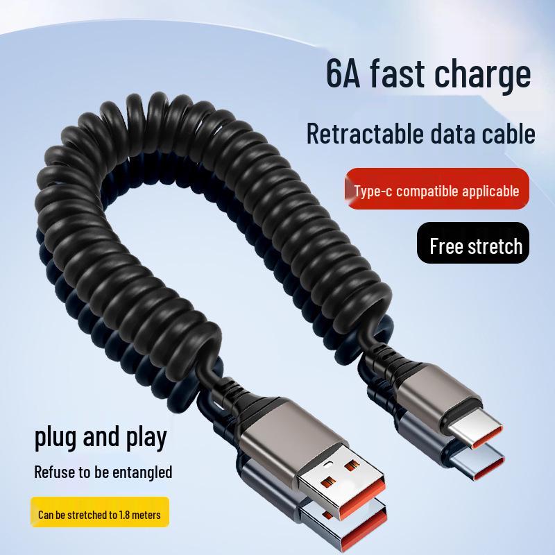 6A Retractable Car Data Cable - Super Fast Charging for Huawei & Apple, Perfect for Car & Motorcycle
