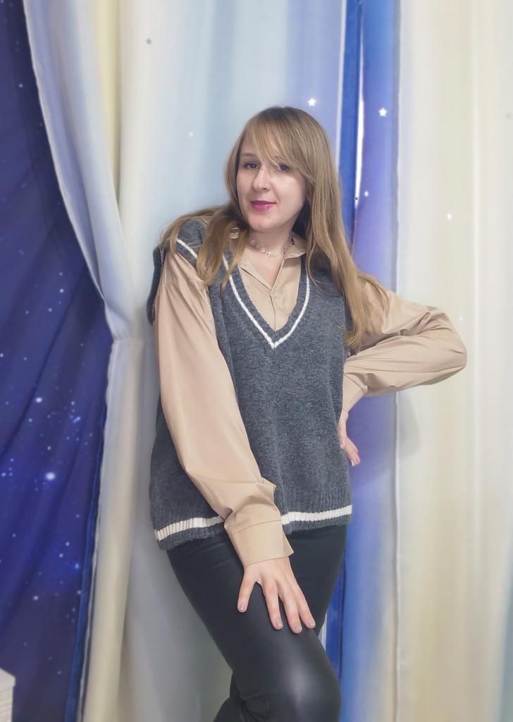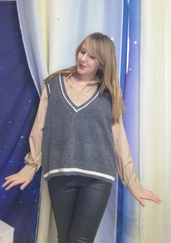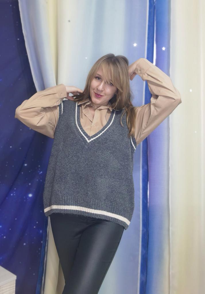 DIMANAF 2025 Plus Size Sweaters Vest Autumn Women Solid V-Neck Sweaters Knitting Loose Grey Beige Sweater
