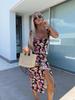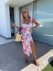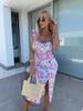 2025 Summer French Floral Midi Dress with Elegant Sling and Slit Design