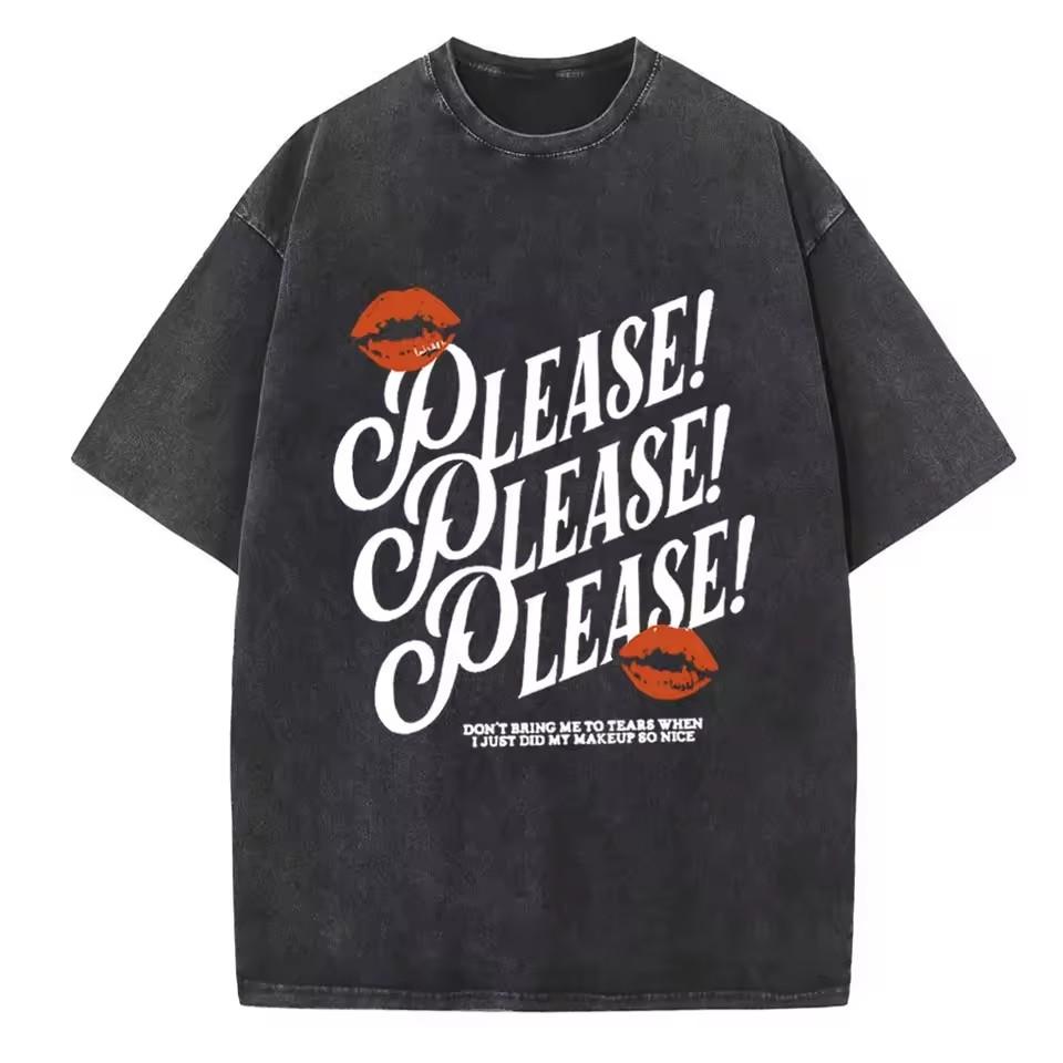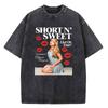 Sabrina Carpenter Washed T-shirt Please Please Please Music Merch Fan T-shirt High Quality Cotton Unisex Harajuku Tshirts
