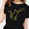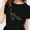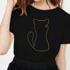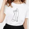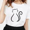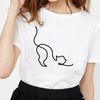 Kawaii Cat Line Drawing Minimalist Print T Shirt Female Harajuku Aesthetic Streetwear Summer Clothes for Women Camisa Masculina