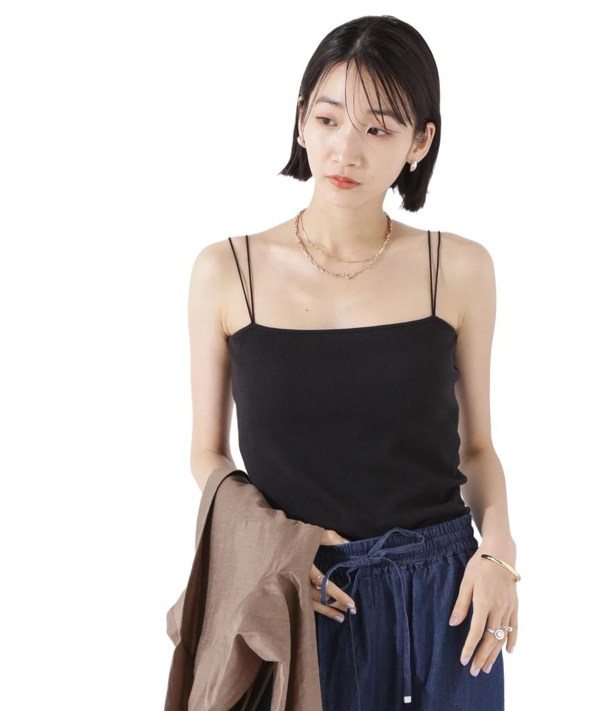[2025 SS] NANO universe: This cupped camisole is a must-have for layered styles. The slim double straps accentuate your femininity, and the bare-top silhouette creates a trendy look. The padded section is elasticated all around for a secure fit, making it a versatile piece for everyday wear.