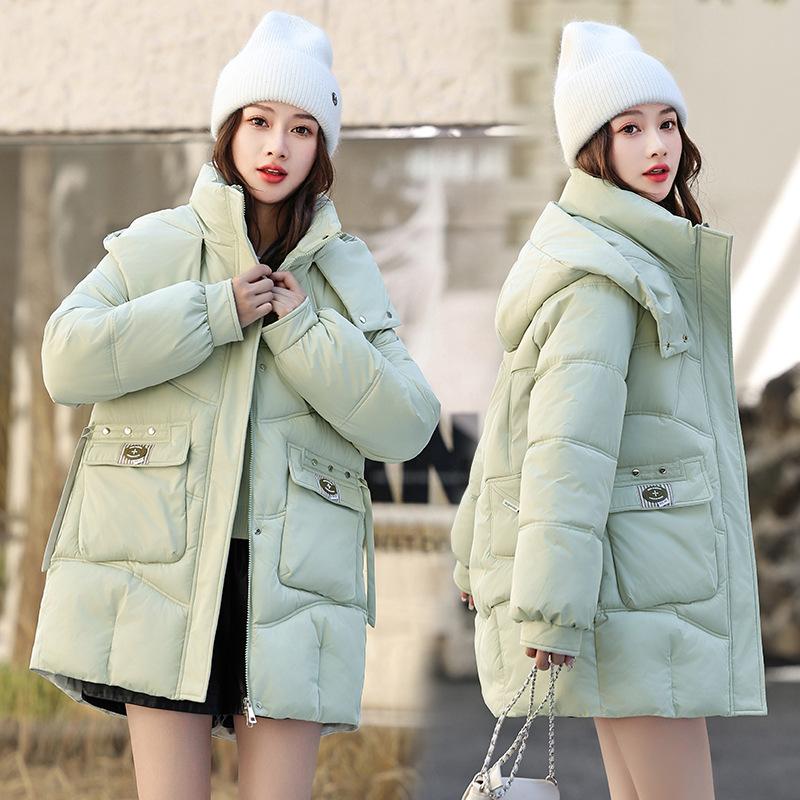 Loose Mid-length Down Padded Jacket Thickened Women's Casual Fashion Windproof Bread Jacket Versatile Hooded Cotton Jacket