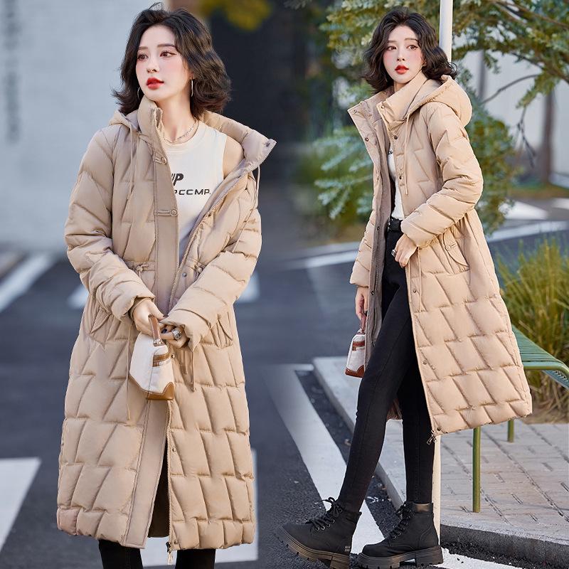 2025 Cotton Clothes, Cotton Clothes, Women's Over the Knee Long Winter New Thickened Jacket, Fashionable Temperament, Slim and Slim Cold Clothing