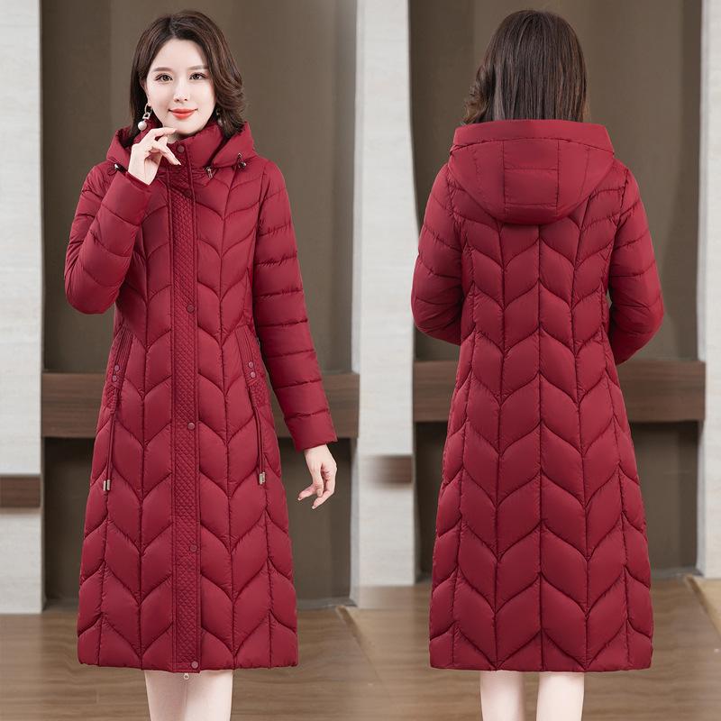 2025 Cotton Jacket New Over-the-Knee Down Padded Jacket Slim Slim Thickened Jacket Padded Jacket Winter Hood