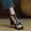 New Style of Mid-heel Cross-toe Sandals, Soft Leather Chunk-heeled Women's Shoes