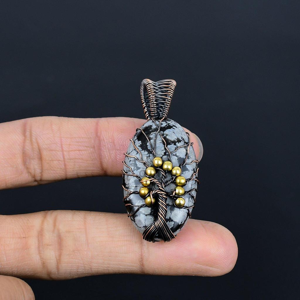 Tree Of Life Snowflake Obsidian Pendant, 999 Copper Wire Wrapped Gemstone Handmade Dainty Jewelry Pendant, For Her