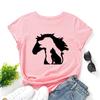 Silhouette Animals Cotton T-Shirt Short Sleeve Round Neck Women 2d Print Tops