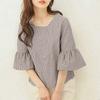 ZANZEA Women Summer Round Neck 3/4 Sleeve Plaid Print Blouse