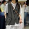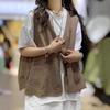 Solid Color Linen V-neck Vest Retro Literary All-match Casual Sleeveless Waistcoat Top Women