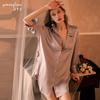Sexy Underwear Ye Menglian Sexy Silk Outer Boyfriend Style Shirt Women's Spring and Autumn Morning Robe Long-sleeved Loungewear Large Size