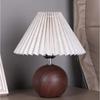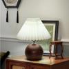 LED Bedside Table Lamp Cute Small Pleated Lamps for Nightstand Circular Walnut Ambient Light USB Bedroom Decoration Night Light