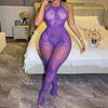 Sexy Seduction Lingerie Burgundy Suspender Hollow Net Jacket Open One-piece