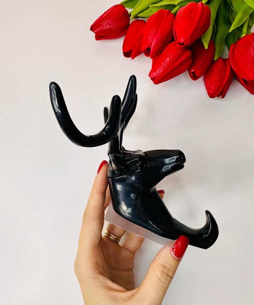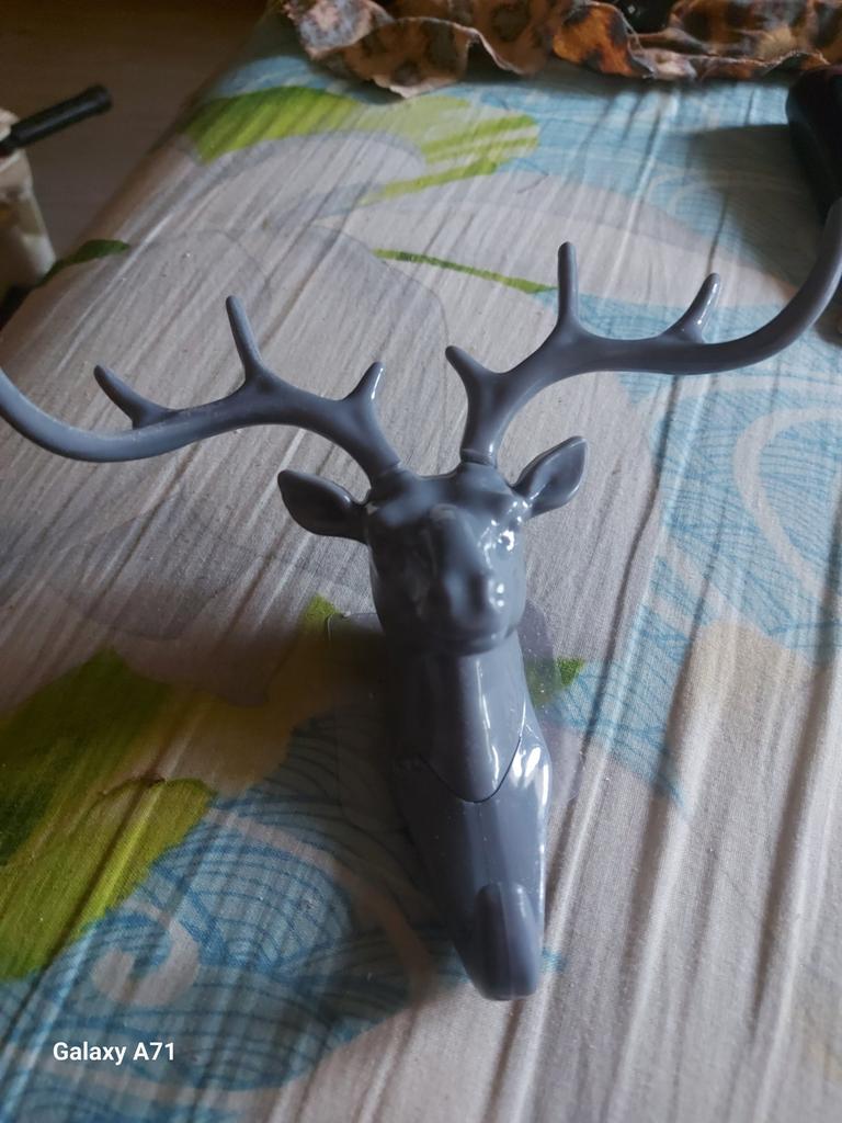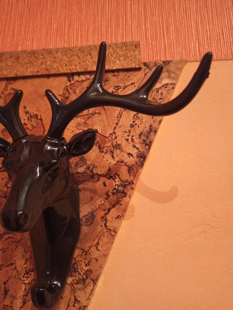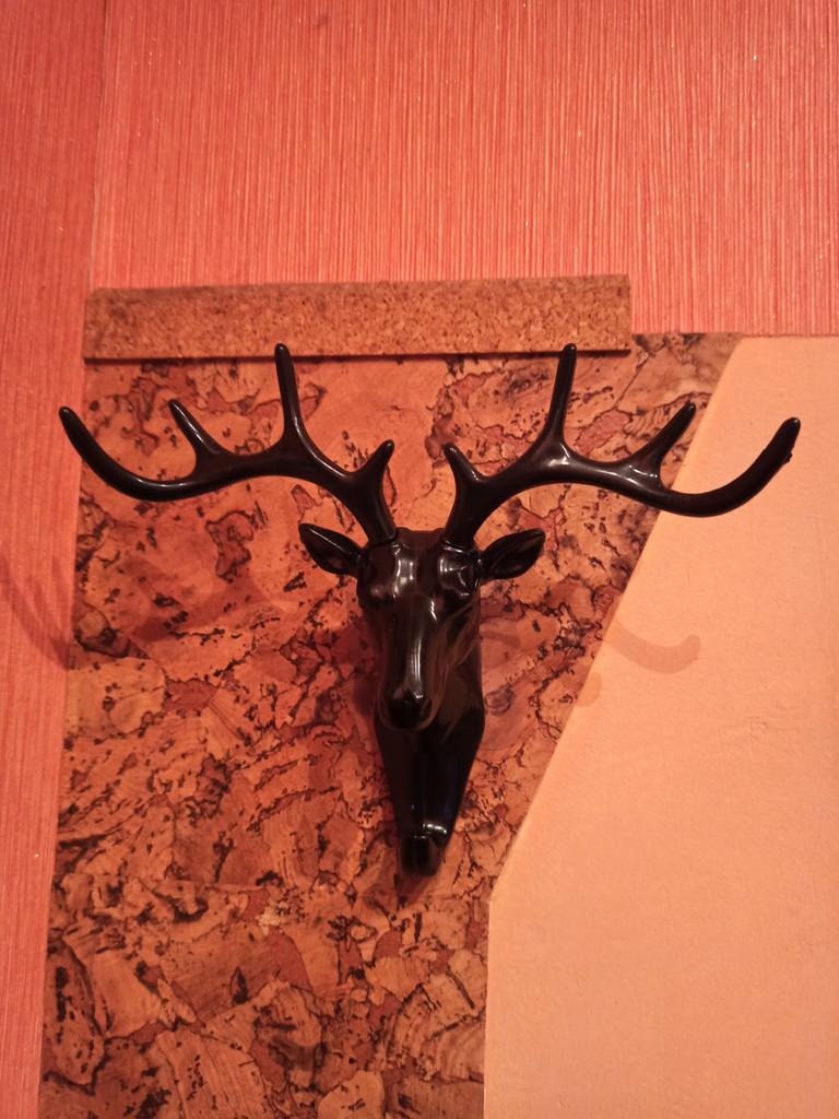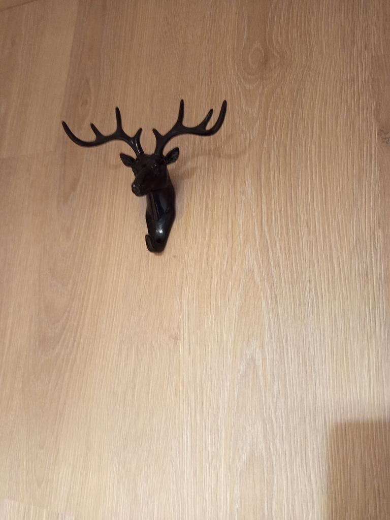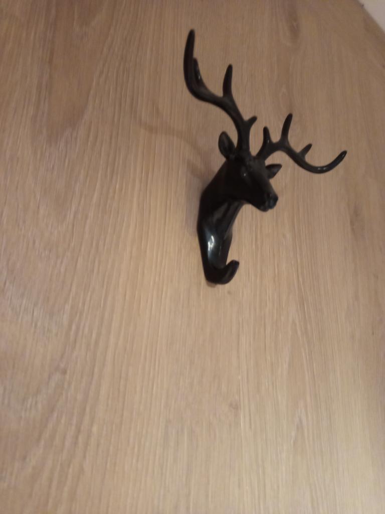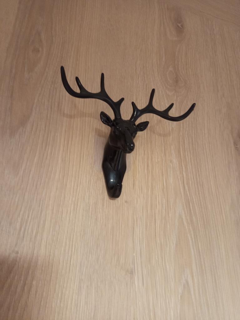 Wall hook in deer head design If you love to combine practicality with design – this is exactly for you. The wall hook in the design of a deer head adds a modern rustic touch to any space and can be used for hanging bags, coats, or decorative accessories.. The outstanding advantage: it comes with PSZ adhesive that leaves no marks – meaning you can stick it without drilling, and without leaving a mark when you remove it.. The material looks durable, and the size (18.5x17 cm) makes it impressive but not bulky.. Also suitable for entrances, hallways, bedrooms or even the kitchen. Note a small measurement error that may exist – not significant for practical use. Design with character – both useful and decorative!