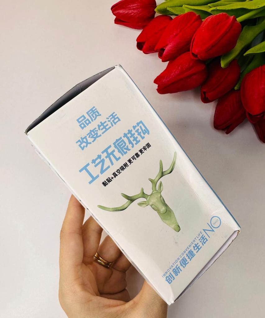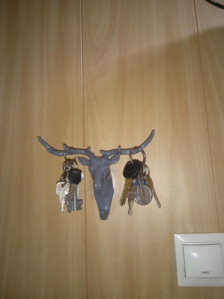 Wall hook in the shape of a deer The hook is made of durable plastic Such a hook does not require holes in the wall and drilling, it simply attaches to an adhesive plate that is included in the kit. You can hang both a handbag and keys on the reindeer so they are always in their place and you don't have to search all over the house for them, like I do 🙂 The quality of the hook is good. The hook arrived well packaged, in accordance with the order. I recommend!