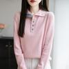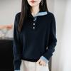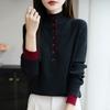 New Autumn and Winter Style Striped Color-blocking Fake Two-piece Knitted Base Layer Women's Half-open-neck Pullover Long-sleeved Sweater