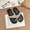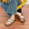 One-word Cool Slippers with Toes Women's Summer Wear High-end Woven Flat Sandals Women's Fashion Versatile Women's Shoes