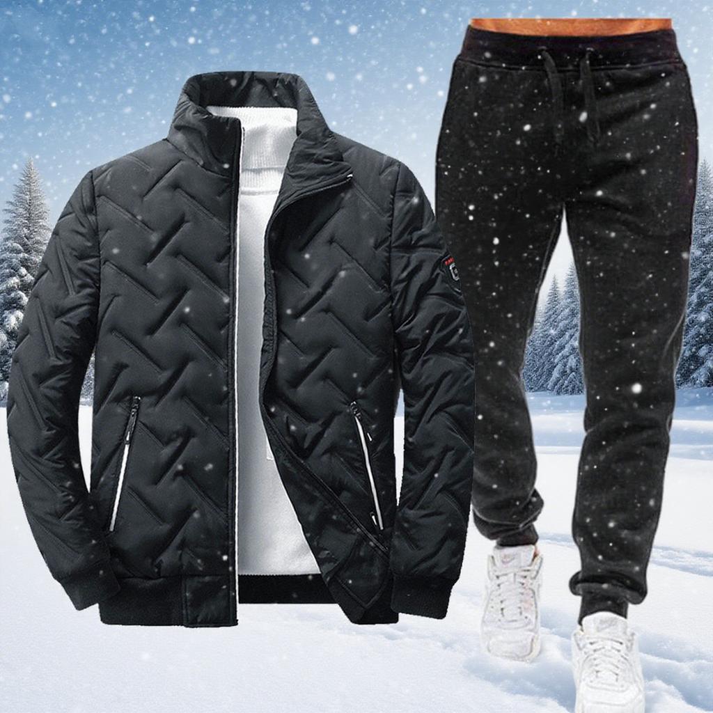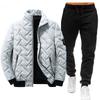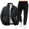 Men's Stand-up Collar Fashion Warm Cotton Clothes + Trousers Suit Winter Plus Velvet Thick Cotton Clothes Casual Slim Fit