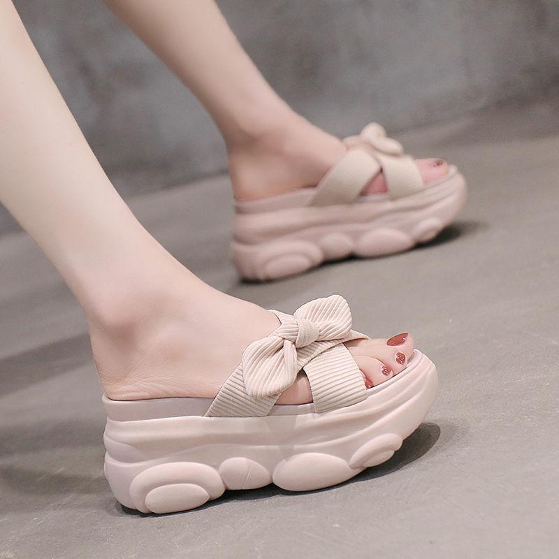 Fashion Women's Slippers And Ladies Sandals Outside Kawaii Shoes Heeled Cute With Bow Slides Apricot 39 New Style Fashion Luxury Stylish