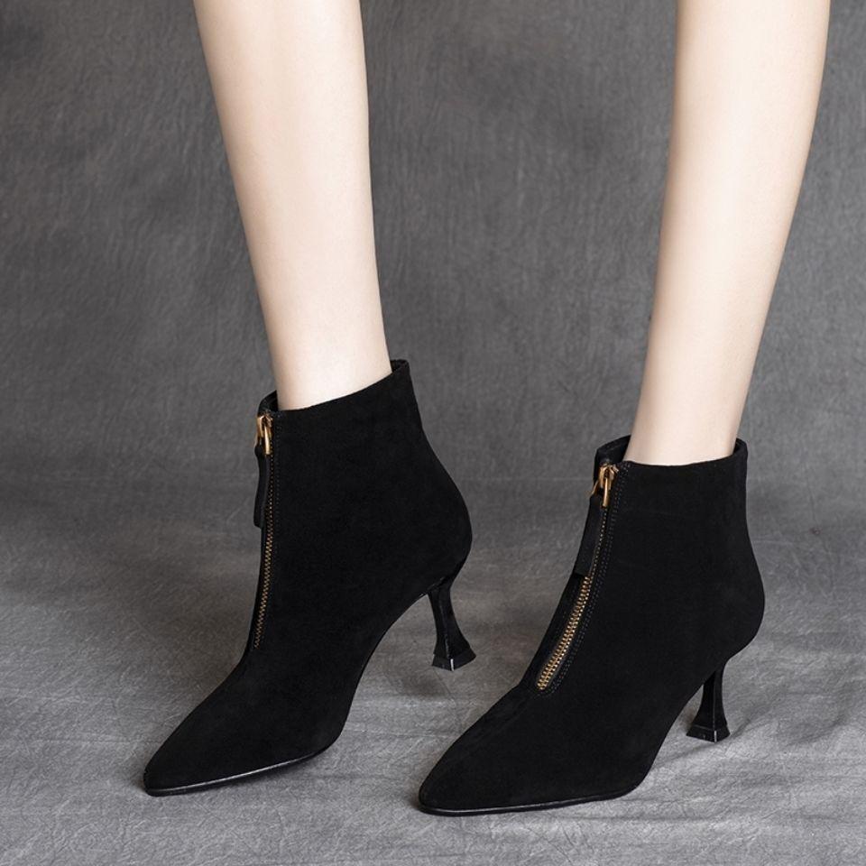 Fashion Black Heeled Pointed Toe Ankle Boots for Women Autumn Winter Warm Woman Short Shoes Hot New In Footwear High Quality Booties
