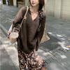 Lazy Wind Loose Inner V-neck Brown Sweater Women's Autumn and Winter New High-end Small Top