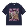 Vintage Lesbians Eat What Funny Cat Meme T Shirts Men Women Aesthetic Fashion Short Sleeve T-shirt Summer Oversized Cotton Tees
