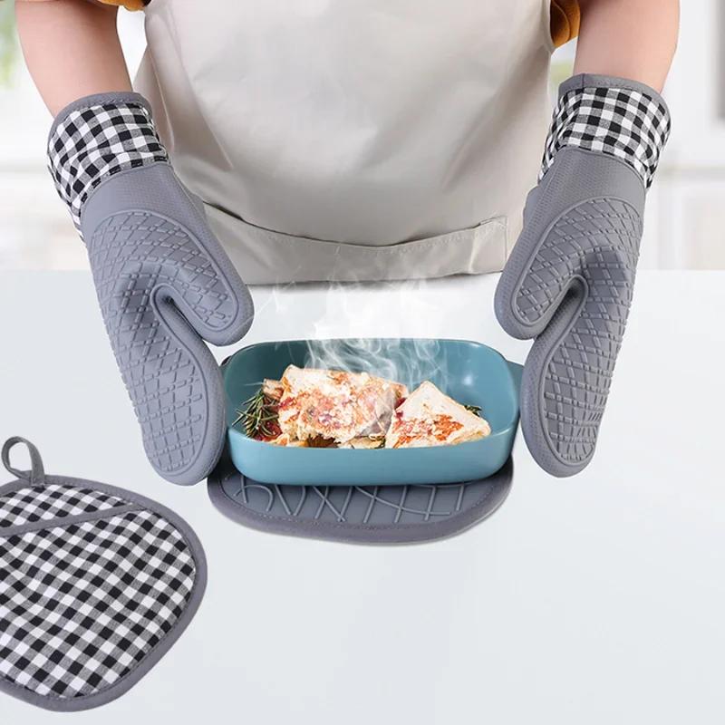1pc Insulated Oven Gloves Silicone Heat-proof Gloves Oven Mitts Microwave Oven Baking Tools Household Kitchen Bar Bakeware