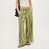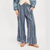 Women Comfortable Casual Drapery Elastic High-Waisted Striped Loose Fit Wide Leg Pants with Pocket
