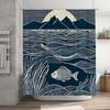 Modern Artistic Blue and White Fish and Mountain Pattern Waterproof Shower Curtain for Stylish Bathroom Decor, Easy Instal