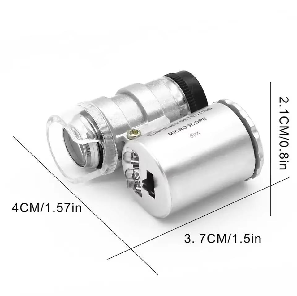 Mini 60x Microscope (with LED Light) HD Magnifier Handheld Portable Mini Magnifier Banknote Examining Identification Pocket Jewe